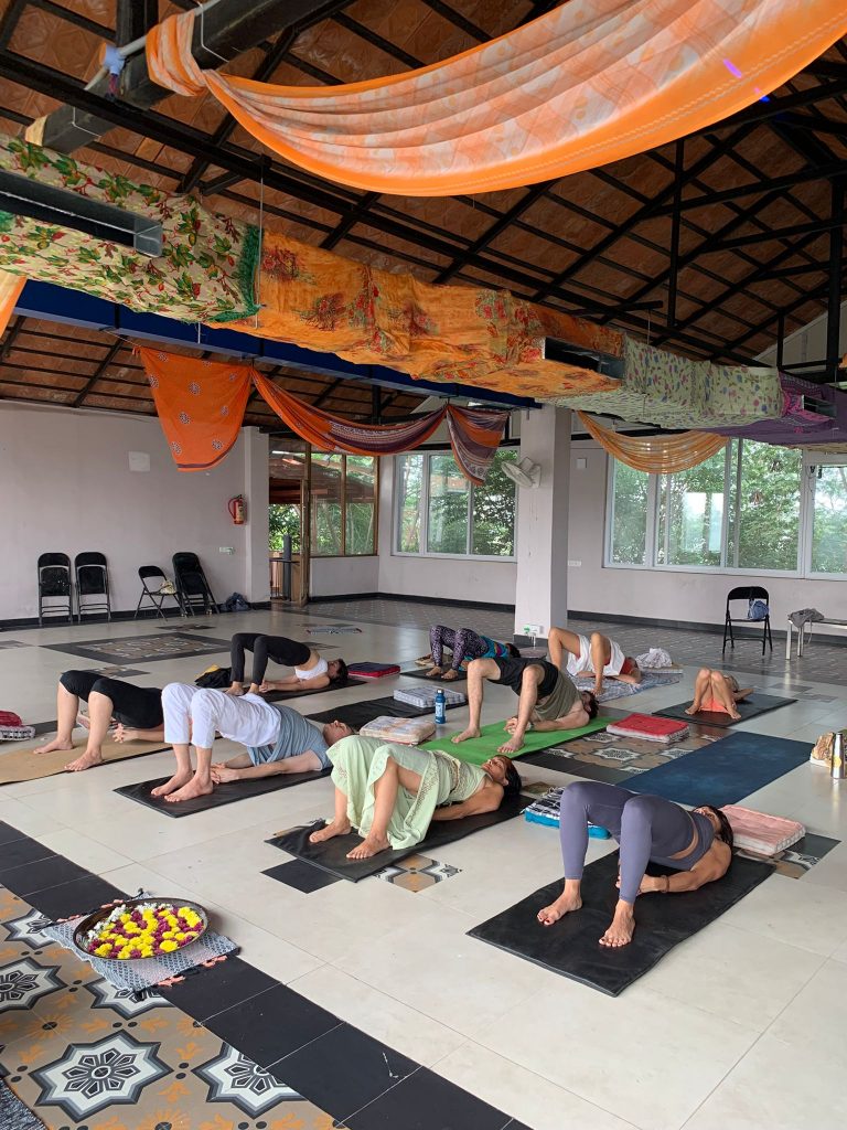Yogaklasse im Gia Mantra Global Village, Tiruvannamalai, während des SunSunLove Festival 2026